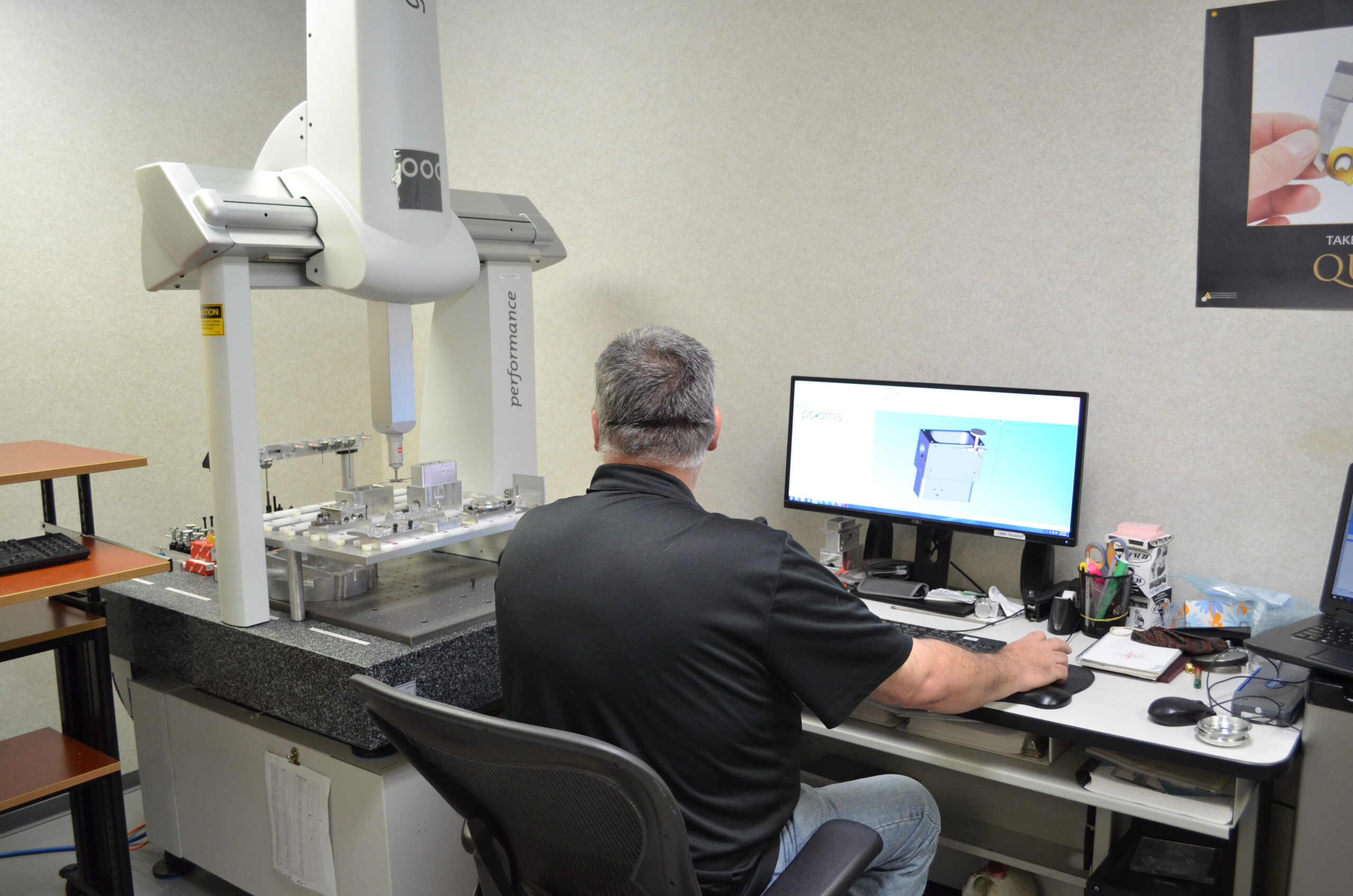 Staub’s Brown and Sharper Global Performance CMM is the best solution for high-tolerance parts. It has a motorized scanning probe head and thermal compensation software and an inspection window size of 47-in (wide) by 59-in (long) by 39-in (high). Utilizing the latest PC-DMIS software, we incorporate 3D Solid CAD models for inspection, increasing accuracy while decreasing inspection cycle times. We’ve added several custom-designed, multi-part fixture plates and a 9-port probe docking/changing station. This allows us to effectively utilize unmanned, lights-out inspection and measure hundreds of parts without human interaction.